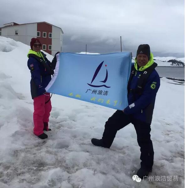 他(tā)們在第七大陸南極冰原上豎起了廣州浪潔的旗幟。